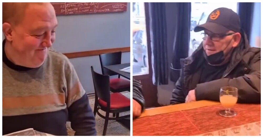 Друзья собрались в заведении чисто мужской компанией. Пушистый местный житель решил к ним присоединиться.