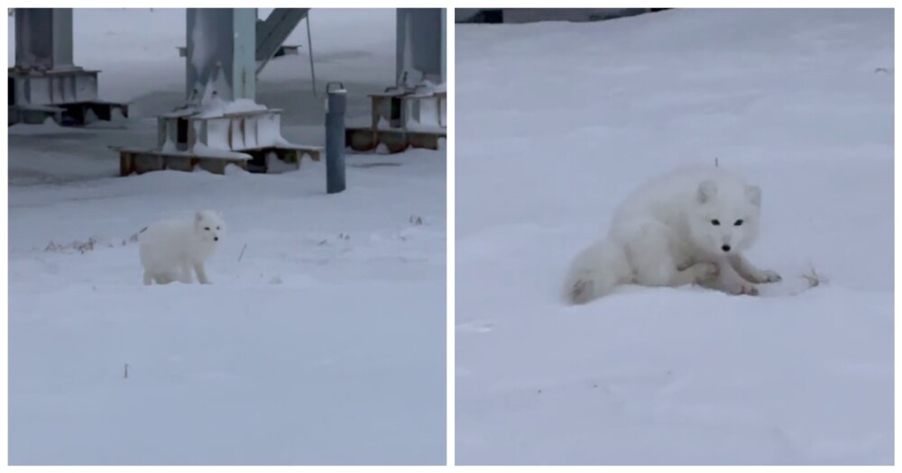 Красавец-песец хорошо проводит время в районе вахтового поселка Сабетта на Ямале.