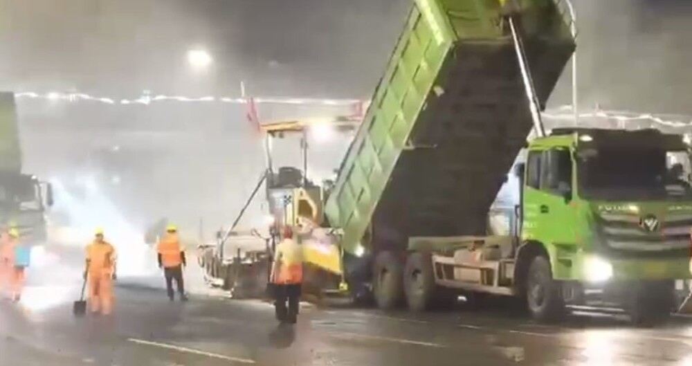 В Пекине рабочие уложили 8 тысяч тонн асфальта и полностью обновили 2,4 километра кольцевой дороги ночью за шесть часов.
