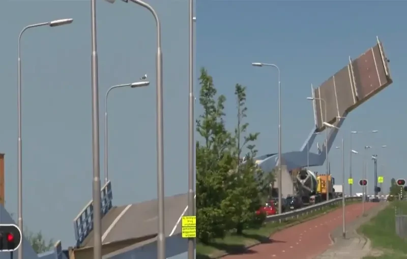 В нидерландском городе Леуварден можно отыскать «летающий» мост. Когда приближается судно, часть автомобильной дороги размером 15х15 метров поднимается в небо. После дорога возвращается на свое место.