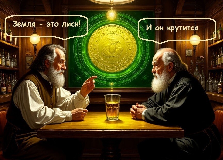 Спойлер: Земля – плоский диск, вращающийся вдоль вертикальной оси, как монетка на ребре, люди живут с двух сторон.