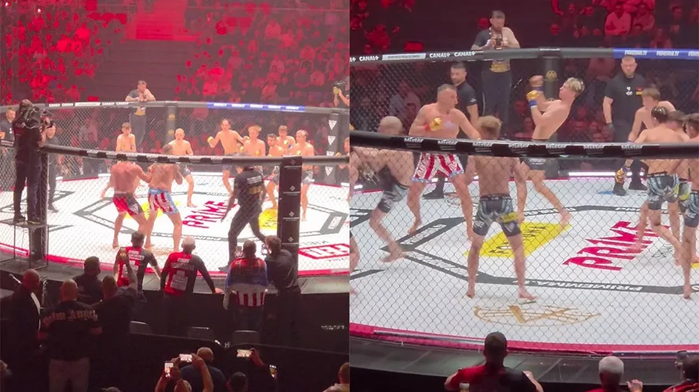 На одном из боевых мероприятий в Польше обычный поединок превратился в настоящий цирк: в октагоне одновременно оказалось около десяти участников! Ситуация выглядела настолько забавно и абсурдно, что зрители не могли сдержать смеха, а кадры «массовой схватки» быстро разлетелись по сети.