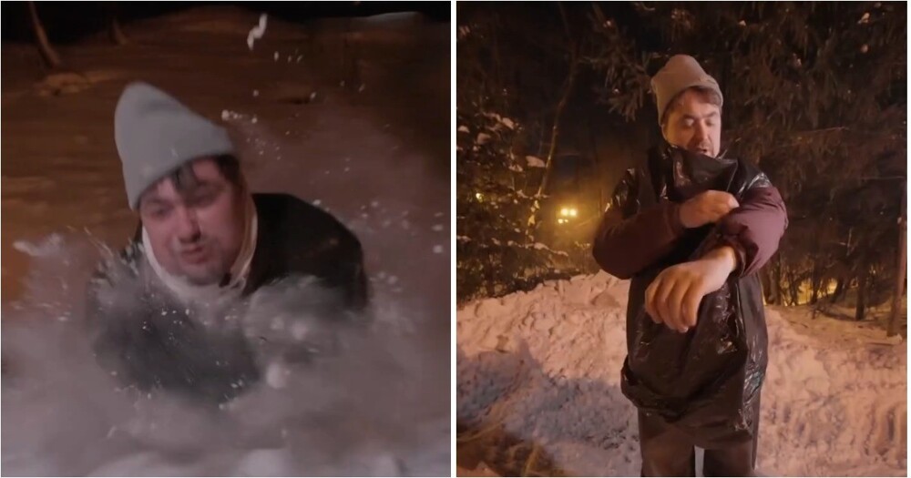 Снег, скорость и море адреналина — вместо санок ребята использовали обычные мусорные пакеты. Простая идея превратилась в экстремальное и очень зрелищное зимнее развлечение.