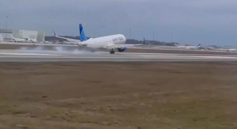 В США произошёл нештатный инцидент с пассажирским самолётом. Переднее колесо шасси отлетело у самолета United Airlines во время посадки.