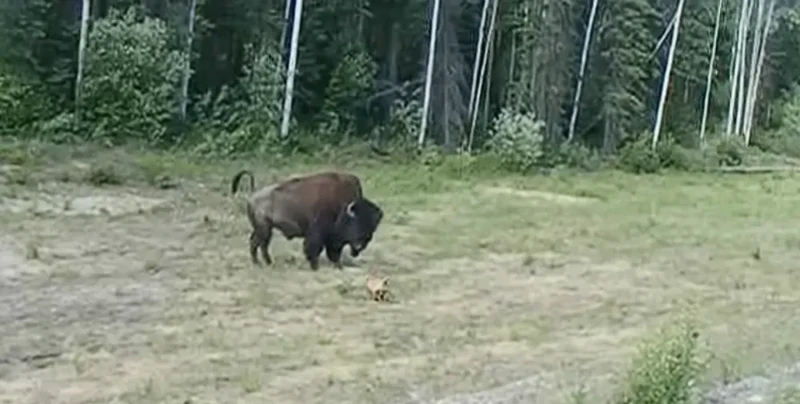 В США питбуль одной пары туристов из Канады решил наброситься на бизона, который спокойно пасся вблизи лесополосы. За пару секунд пес быстро понял свою ошибку, а в сети откровенно посмеялись над поступком собаки.