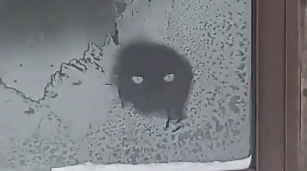 Ничего необычного, просто кот лижет замёрзшее стекло. Он делает это для того, чтобы ничего не мешало его обзору.