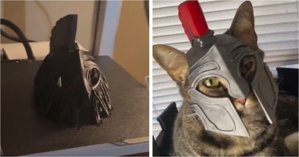 Молодой человек решил порадовать своего питомца и сделал для него коллекцию миниатюрных шлемов и шапок, напечатанных на 3D-принтере. Необычные аксессуары выглядят забавно и превращают кота в настоящую звезду видео.