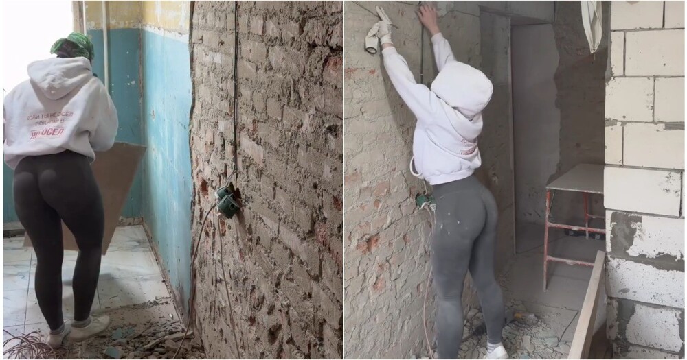 На видео девушка демонстрирует, как с легкостью выполняются демонтажные работы внутри помещения. Она использует перфоратор для удаления старой штукатурки, показывая быстрый и эффективный способ подготовки стен к ремонту.