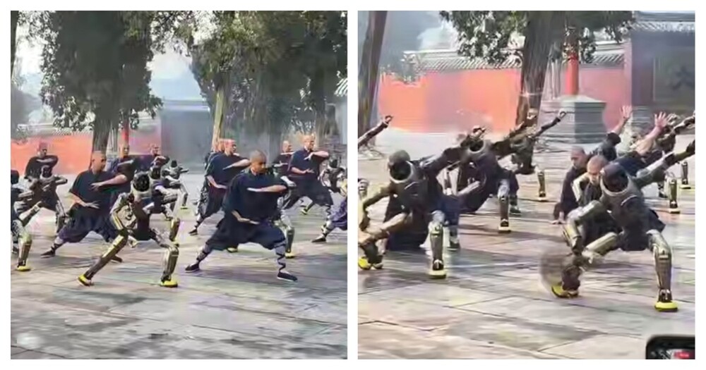 Человекоподобные роботы поучаствовали в показательном выступлении в Шаолиньском монастыре. Часть выступления сняли на видео.