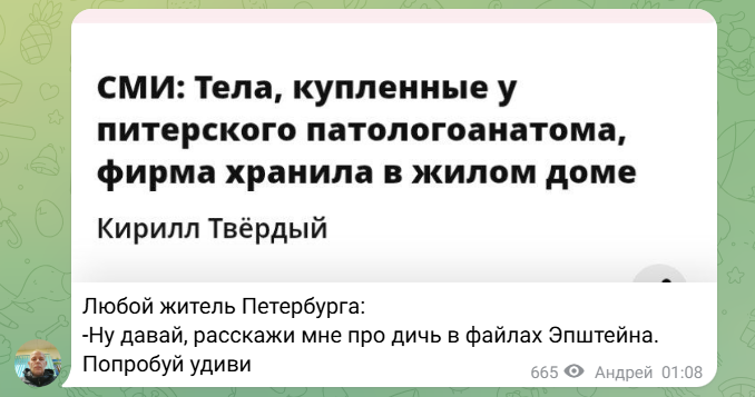 Пока прогрессивная мировая общественность в сотый раз перетряхивает грязное белье на острове Эпштейна, гадая, кто из селебрити заглядывал на «остров разврата», в Северной столице решили напомнить, что истинный хоррор может твориться где угодно.