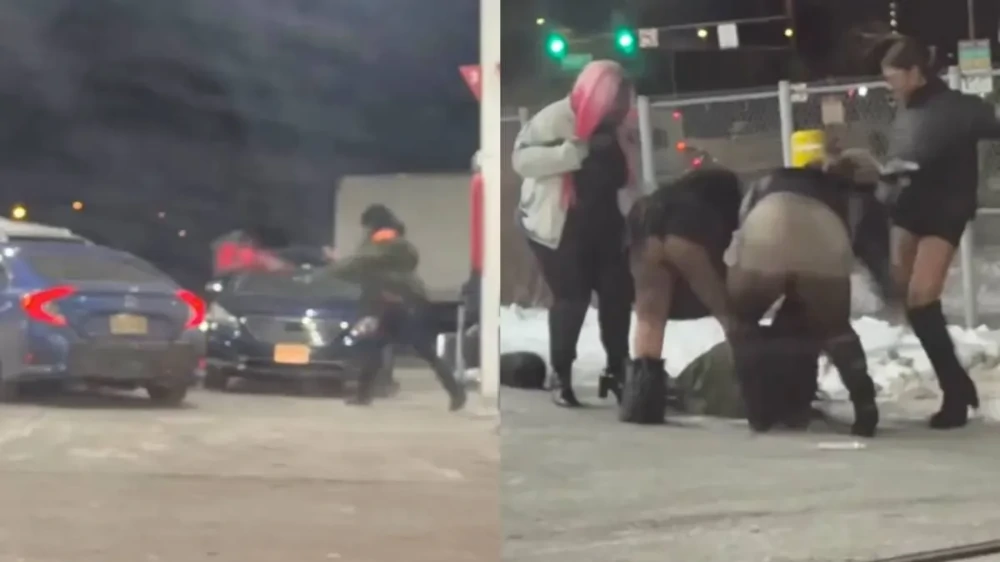 На автозаправке произошёл инцидент с участием мужчины и четырёх женщин. По данным видео, конфликт начался после того, как мужчина бросил дорожный конус в их автомобиль. В ответ женщины вступили в драку, и мужчина оказался в неравной ситуации.