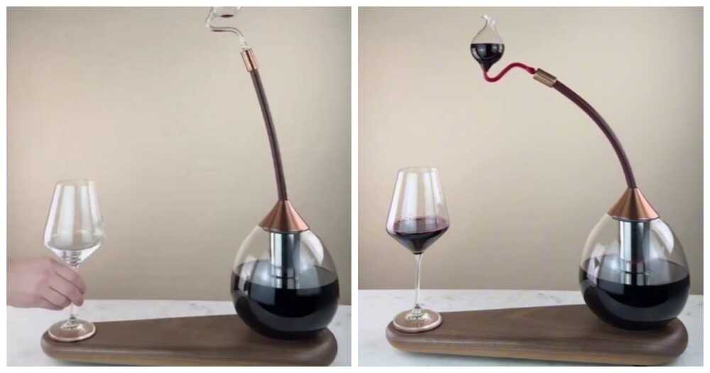 Британская компания Harvey & John сделал графин, который сам наливает вино в бокал. Выглядит необычно и немного футуристично.