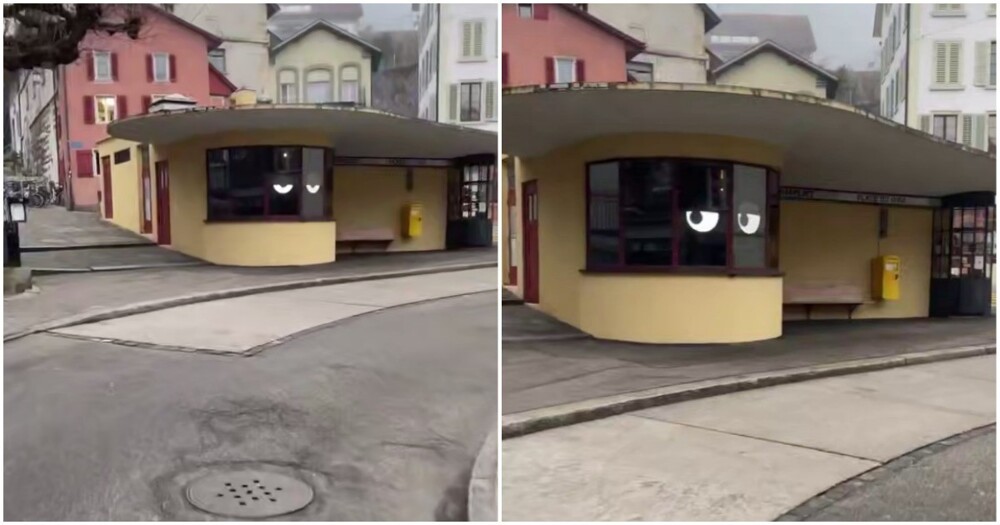 В швейцарском городе Биль остановка общественного транспорта внезапно «ожила». Она провожает взглядом каждого пешехода.