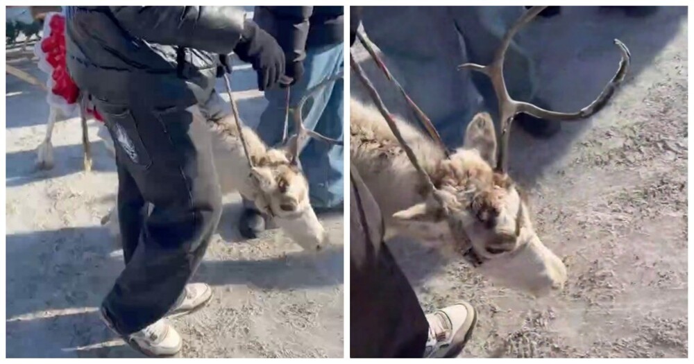 На ярмарке в Красноярском крае очевидцы сняли измученного оленя, которого заставляли тянуть сани с туристами. Внешний вид животного говорит больше, чем любые слова.