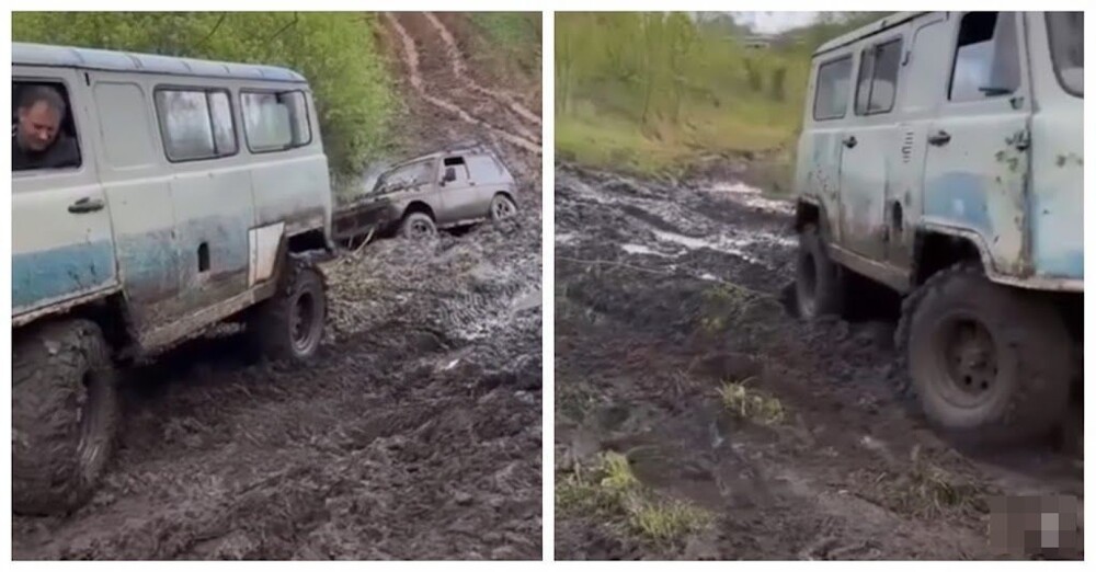 Бесстрашный оператор решил заснять, как автомобиль вытаскивают из грязи. Игнорирование правил безопасности обернулось травмой.