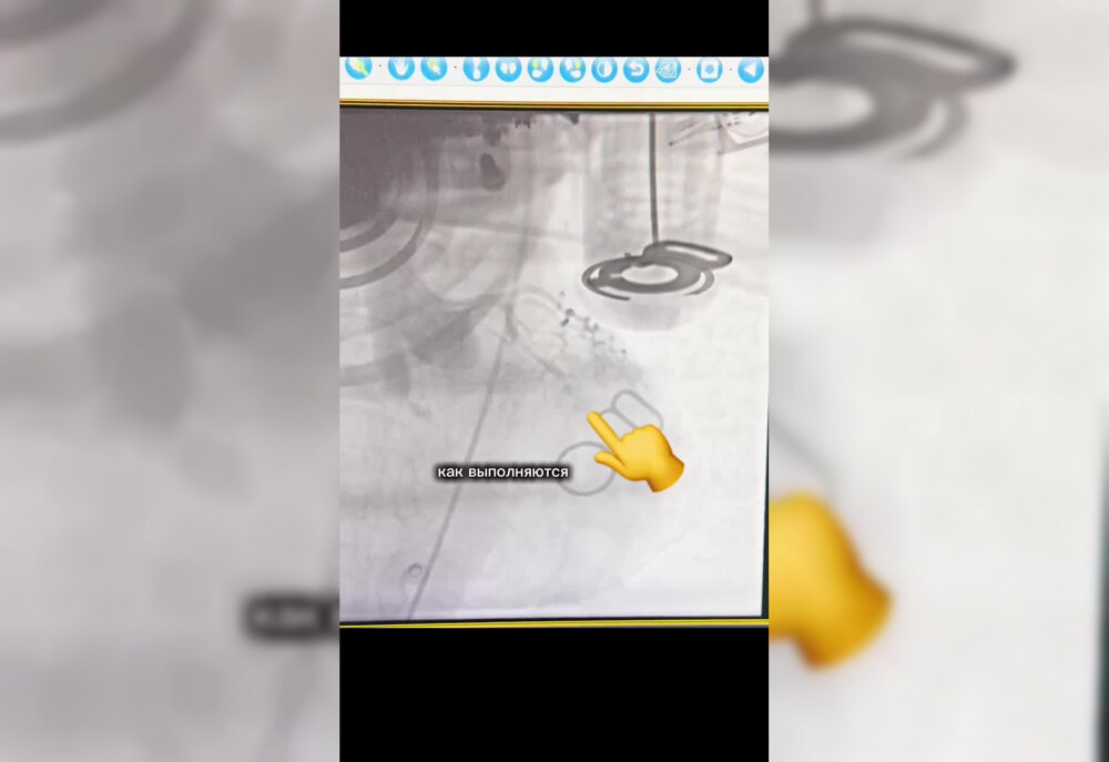 В операционной произошёл редкий и сложный случай: 58-летняя женщина поступила с инфарктом и остановкой сердца. Сразу был подключён аппарат непрямого массажа сердца, а на мониторах хирурги наблюдали работу сердца и аппарата. При обследовании выявилась закрытая тромбом огибающая артерия.