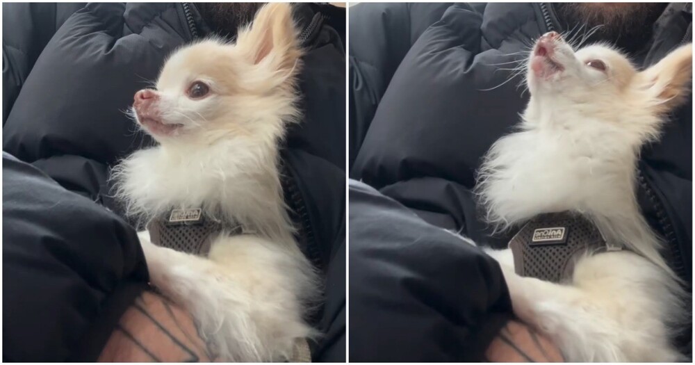 Пёс породы чихуахуа воет на колокольный звон. Волчара!