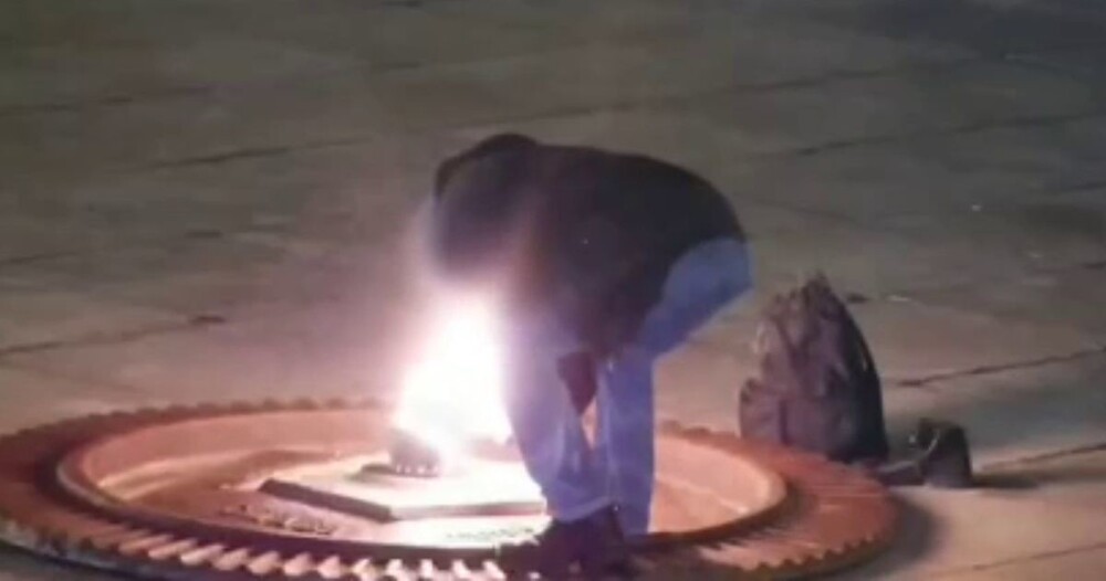 В Калининграде 48-летний местный житель прикурил сигарету от Вечного огня. Кроме того, нетрезвый мужчина грел ноги и сушил свою обувь у пламени. Действия нехорошего человека попали на запись камеры видеонаблюдения.