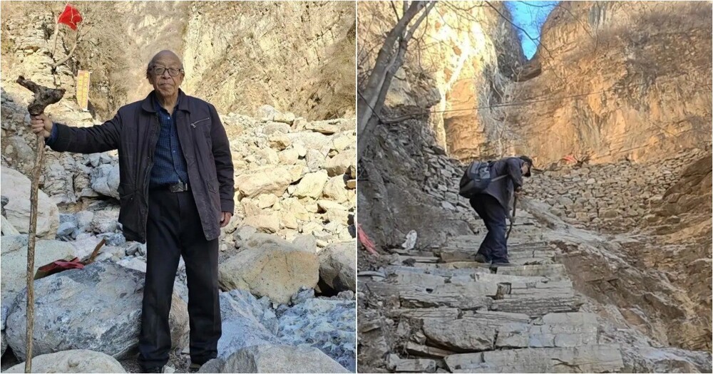Пенсионер из китайской провинции Хэбэй на собственные деньги построил почти 10 тыс. каменных ступеней для туристического объекта.