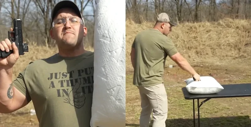 В США владелец оружия решил проверить реальность известного клише из кинофильмов, где воры используют обычную подушку вместо глушителя.