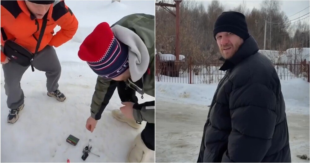 Забавный ролик сняли мужчины после случайного столкновения на узкой тропинке. У одного из них из кармана высыпались ключи, карта и гигиеническая помада — но когда дело дошло до последнего предмета, началось самое интересное.