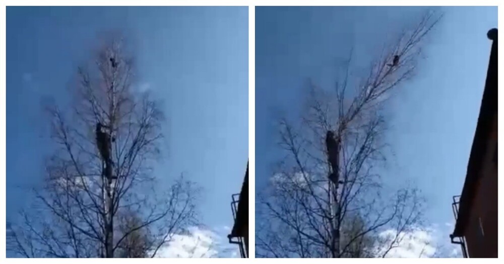 Мужчина решил спасти животное с дерева. Кого-то спас, кого-то травмировал...