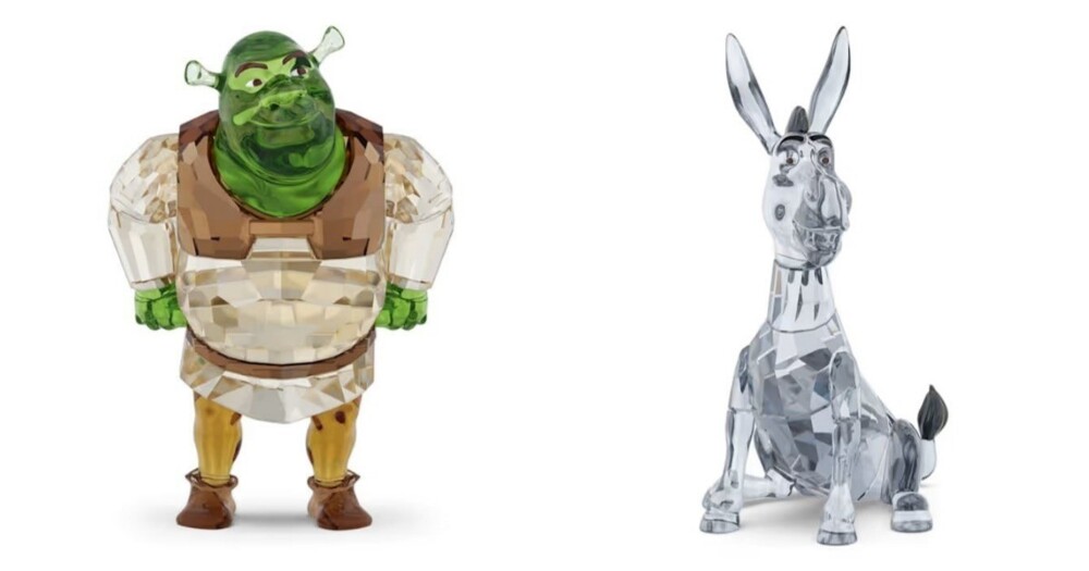 Бренд Swarovski представил коллекцию к 25-летию первой части мультфильма «Шрек». В неё вошли хрустальные фигурки: Шрека, Фионы, Осла, Кота в сапогах и пряничного человечка.
