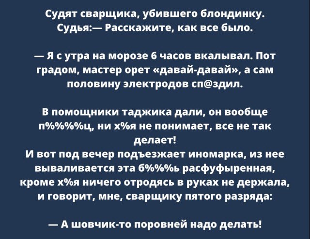 Как всегда на самом интересном 7 марта — Андрей Миронов — 85 лет со дня рождения Идеальные охотники Шакил О’Нил встретился с россиянкой Лисиной – самой высокой профессиональной моделью в мире Зачем египтяне шли 900 км навстречу смерти? Поздравления и открытки на 8 марта — Международный женский день (30 фото) Роскомнадзор предлагает ввести штрафы для СМИ за публикации материалов о нападениях в школах Лукашенко закрыл личные сообщения в TikTok после обещания ответить каждой женщине 6 марта - день рождения Сергея Бурунова Повязали... «Маремьяна, не страмись! Лезь в дудку!» Эту музыку из Бара ты полюбому будешь помнить всегда В Роспатенте зарегистрировали образ пугающего памятника Алёнке Эмоции ребёнка Каждый день пробивают новое дно С актуальным советом к 8 Марта влетает Виталий Милонов Кукухой по-моему поехал товарищ Рыбаки устроили опасные покатушки на снегоходах по воде В ГД хотят сократить на два часа рабочий день по пятницам для женщин Подборка забавных твитов обо всем (15 фото)