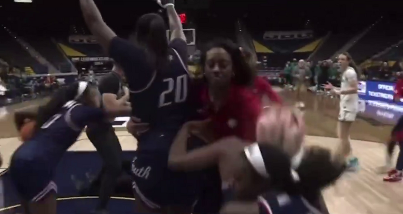 Во второй игровой день решающих турниров Sun Belt, проходящих в традиционную для американского студенческого баскетбола пору «Мартовского безумия», схватка между командами Университета Прибрежной Каролины и Университета Южной Алабамы превратилась из обычного матча в настоящий боевик: за пять минут до сирены конфликт двух оппоненток спровоцировал массовую драку.