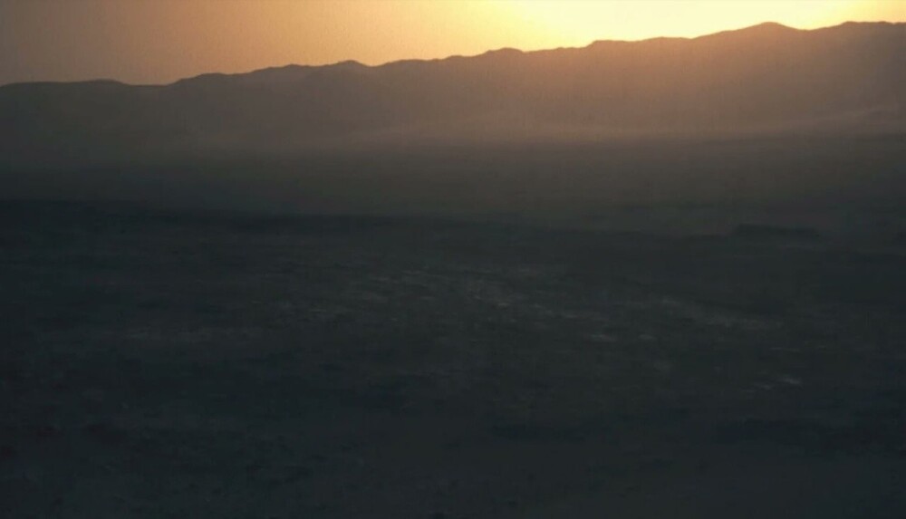 Утро в марсианском кратере Гейла. Холодный, пыльный пейзаж, освещенный бледным солнечным светом. Цветное изображение было получено 8 января 2018 года ровером NASA Curiosity.