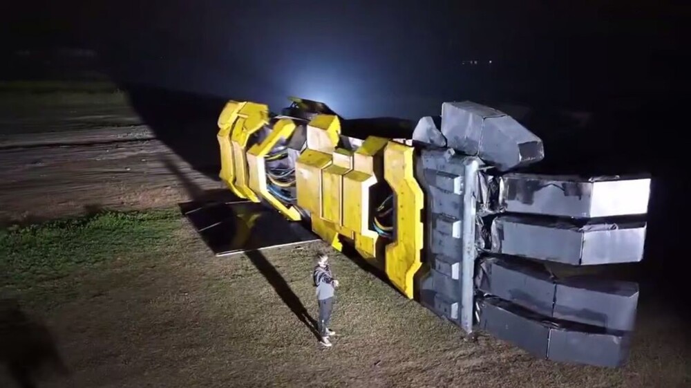 Китайцы создали гигантскую механическую руку, которой можно управлять с помощью специальной перчатки. Она весьма точностью дублирует движения оператора.