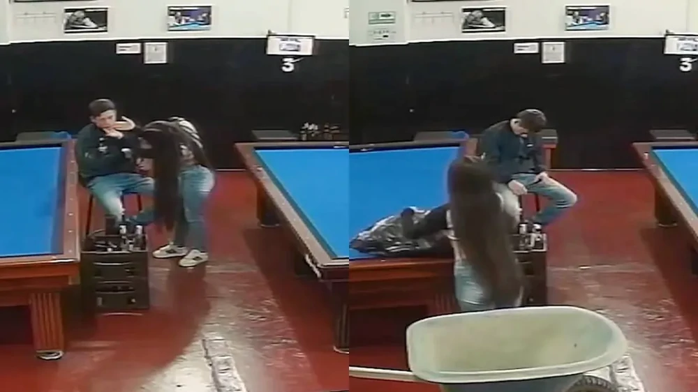 В одном из складских помещений, переоборудованном под бильярдный клуб, мужчина перебрал с пивом и вскоре уснул. Его девушка, заметив ситуацию, проявила находчивость и использовала специальный «транспорт», чтобы аккуратно переместить его.