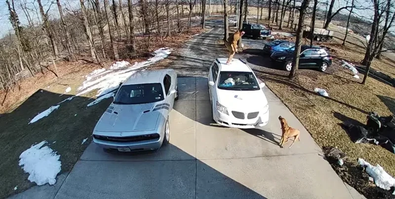 В городе Морсвилль (Пенсильвания, США) доставщик привез заказ на адрес, когда на него выскочила собака. Радость четвероногого мужчина расценил как агрессию и от испуга вылез на крышу автомобиля.
