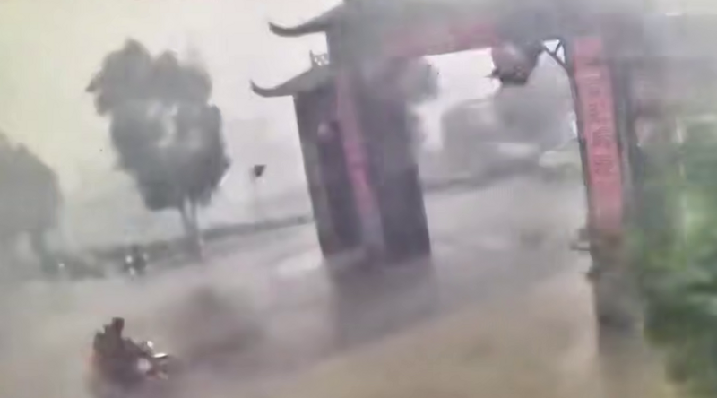 Из-за сильного ветра конструкция шаталась из стороны в сторону и рухнула именно в тот момент, когда китаец проезжал под ними на мопеде.