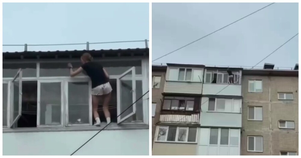 Житель Хабаровска запечатлел девушку, которая мыла окна балкона снаружи. Хорошо, что не упала!
