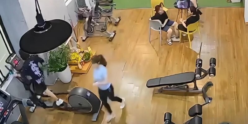 Женщина, поспешившая занять свободную беговую дорожку, не заметила, что тренажер всё ещё включён. В результате она упала и получила травму.