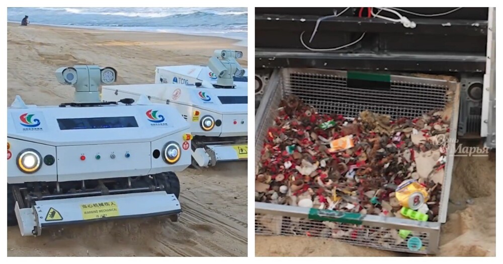 Роботы с искуственным интеллектом появились на пляжах провинции Хайнань в Китае. Они собирают мелкий мусор, просеивая песок.
