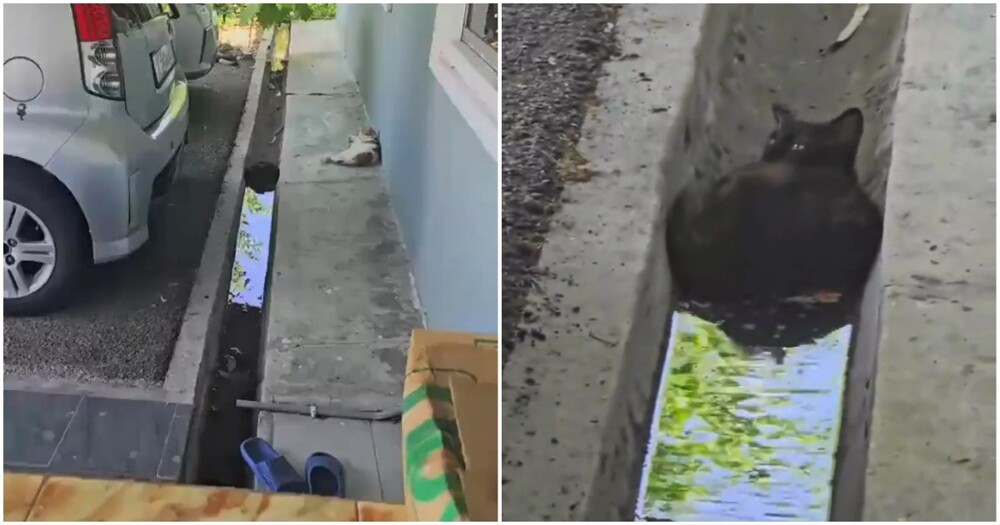 Кошка не заметила, как перекрыла поток воды. Под лежачую киску вода не течёт!