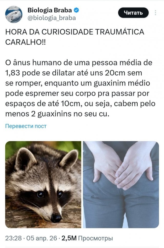 В США грумера оштрафовали на $20 тыс. за отказ стричь «русского» кота Учёные заявили, что человечество превысило допустимую нагрузку на ресурсы Земли Самое детализированное изображение Луны на сегодняшний день В Краснодарском крае женщина швырнула собачьи фекалии в хозяйку пса Девушка потеряла равновесие на электросамокате, увидев машину "Если человек идиот, то это надолго" Уиллем Дефо рассказал еще одну русскую поговорку В Индонезии туристов выбросило с надувной лодки на людей Один из самых странных тренажёров Куэнка: город домов над бездной 22-летняя японская порноактриса стала профессиональным шеф-поваром и готовит блюда мирового уровня Попытка забить столб вручную провалилась 17 исторических кадров, которые вы могли пропустить Вьетнамский водитель спас ребёнка на оживлённой трассе Успели вытащить до пожара Когда зашел не в тот район RuStore решил выпустить свой VPN В Краснодарском крае девушка кинула собачьи фекалии в хозяйку пса после отказа убрать за животным NASA опубликовало новые снимки космоса, включая редкое лунное затмение с обратной стороны Луны (10 фото) Таймлапс: птица построила гнездо, и в нём появились птенцы