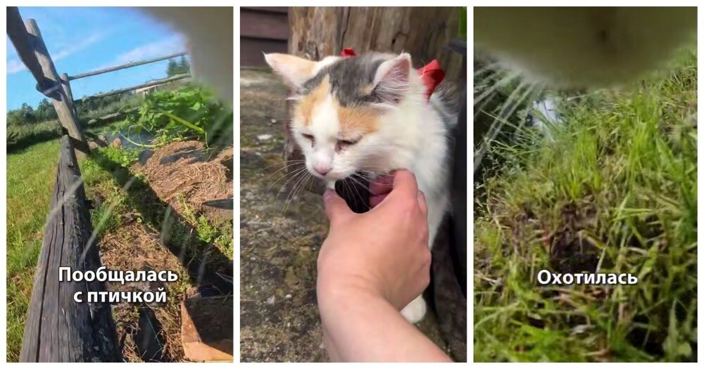 Хозяйка прикрепила к своей кошке миниатюрную экшен-камеру. Она сняла, чем занимается кошка во время своих прогулок.