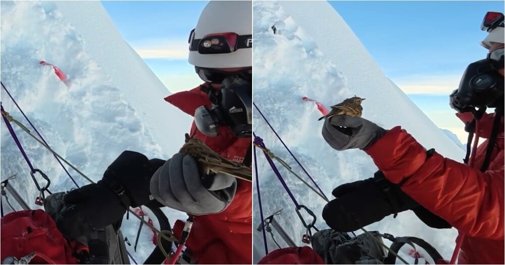Во время восхождения на вершину Гималаев альпинисты Василий Пивцов и Михаил Тарасов нашли замерзающую альпийскую завирушку. Птица была почти окоченевшей, но спортсмены согрели её в варежке. После того как обсох, он снова смог подняться в небо.