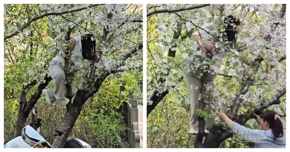 Женщина решила сделать эффектную фотографию на цветущей вишне. Она начала забираться на дерево и упала вместе с ним.