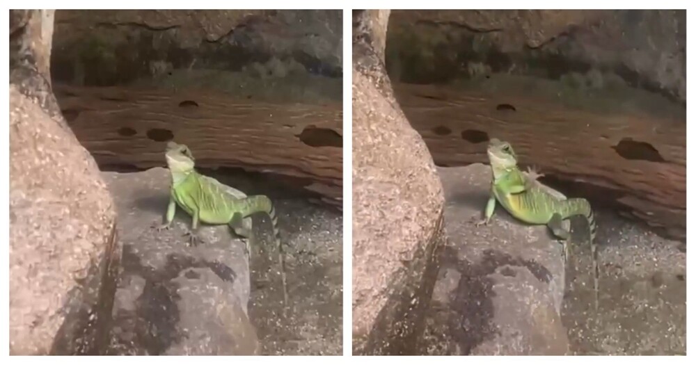 В тропическом парке Малайзии живёт дружелюбная ящерица, которая машет лапкой посетителям.