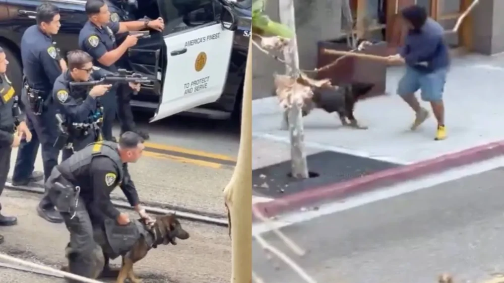 В центре Сан-Диего служебная собака K9 помогла задержать мужчину, подозреваемого в нападении с ножом. Видео показывает действия сотрудников полиции SDPD после сообщения об инциденте. Для задержания были применены нелетальные боеприпасы и кинологический расчёт, что позволило минимизировать риск для окружающих.