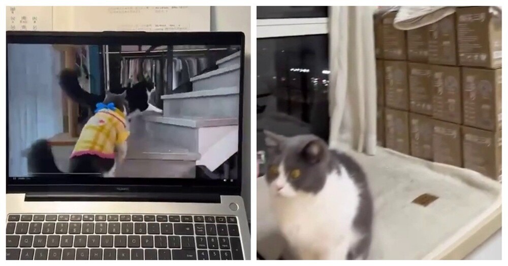 Домашним кошкам включили сгенерированное нейросетью видео, в котором котики умеют разговаривать. Вот какая реакция была у одного из питомцев.