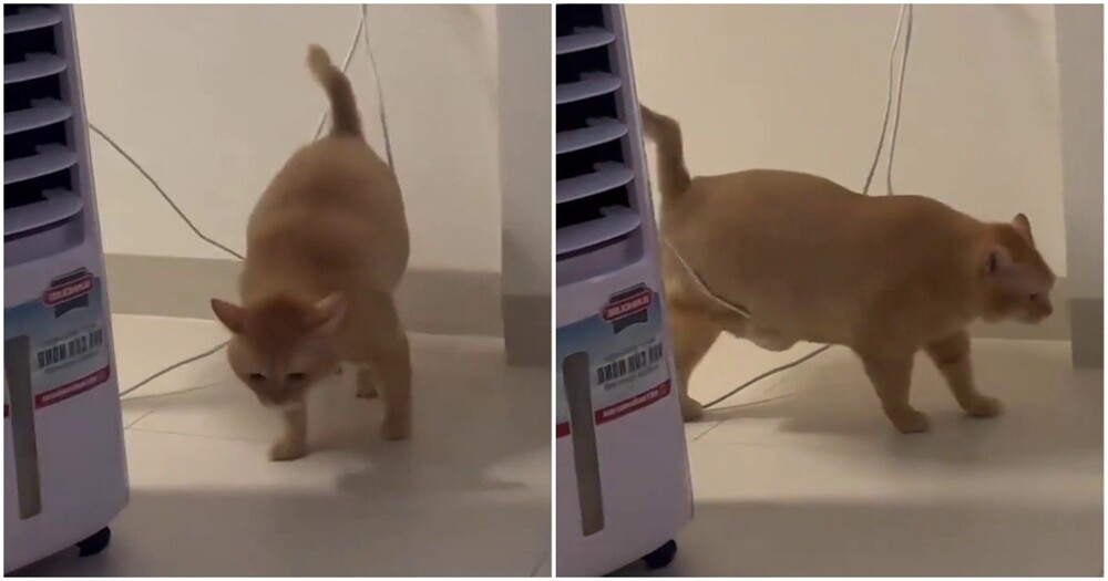 В сети набирает популярность видео с упитанным домашним котом. Питомец во время своей прогулки по дому столкнулся с препятствием в виде провода.