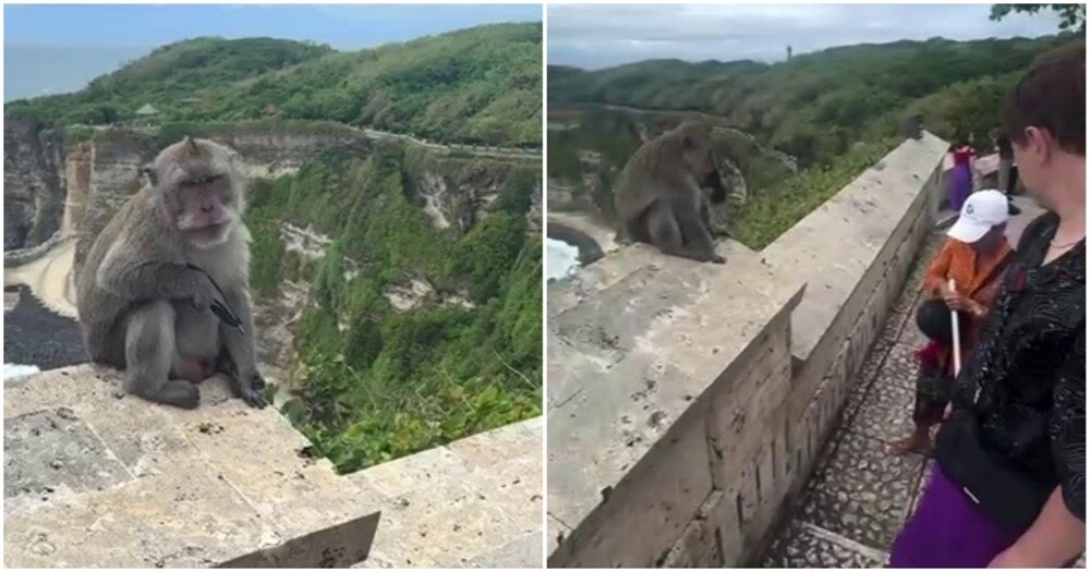 На Бали обезьяна украла очки у русскоязычного туриста и не отдавала их. Местная жительница помогла вернуть аксессуар.