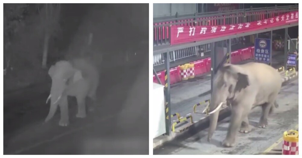 Слон прошёл через погранпункт в китайской провинции Юньнань. Пограничники не стали препятствовать "нелегалу" и разбежались.