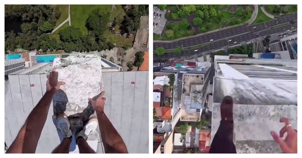 Нарезка видео с любителями острых ощущений, которые совершают прыжки с различных зданий и сооружнений.
